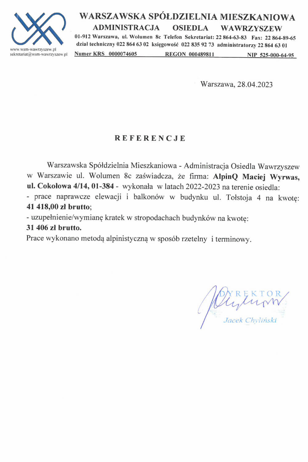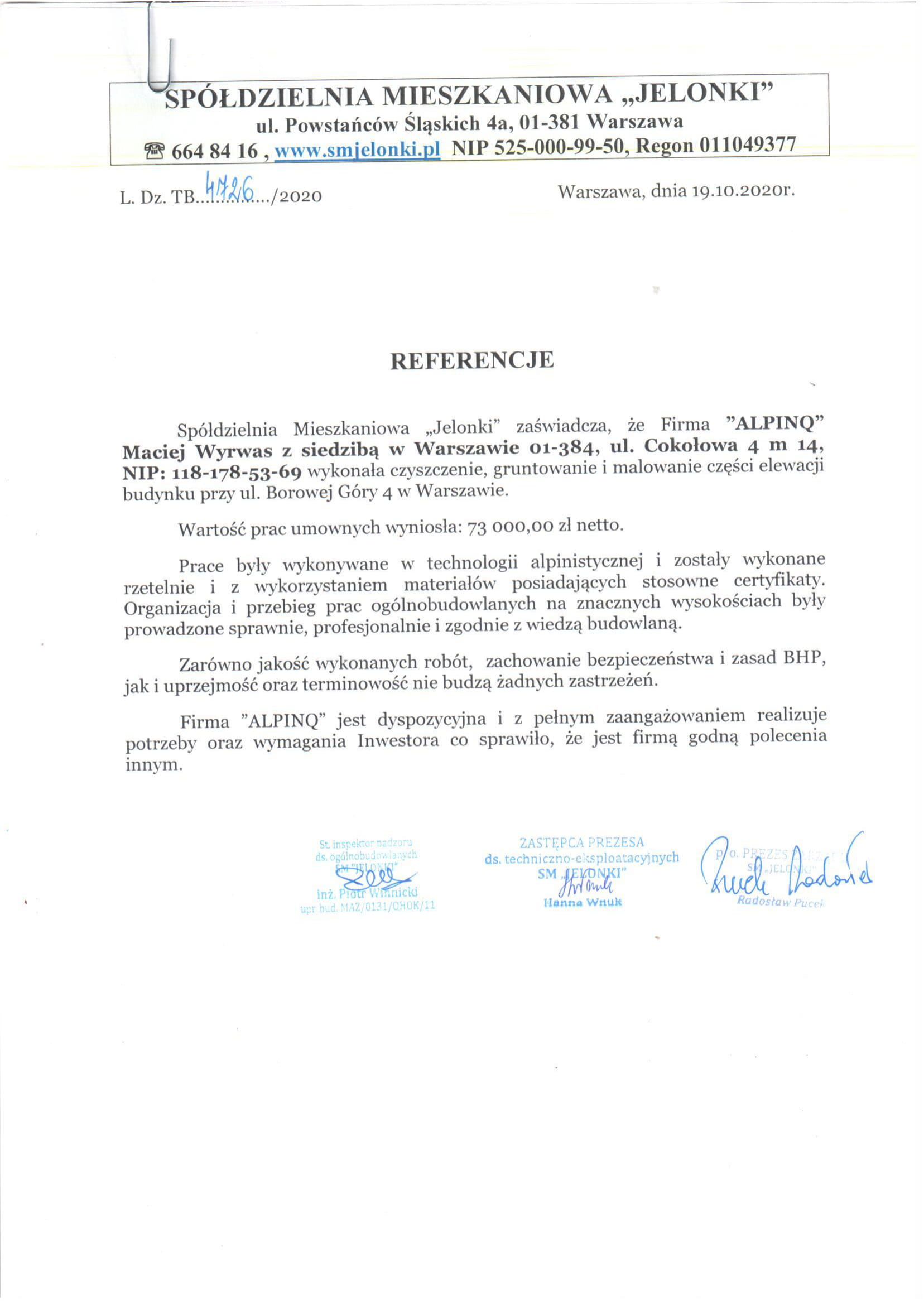 Każdy pracownik przechodzi coroczne szkolenie BHP. Przed przystąpieniem do pracy, dodatkowe szkolenie stanowiskowe. Bezpieczeństwo pracy, to ważny element naszej filozofii prowadzenia usług w zakresie prac wysokościowych.