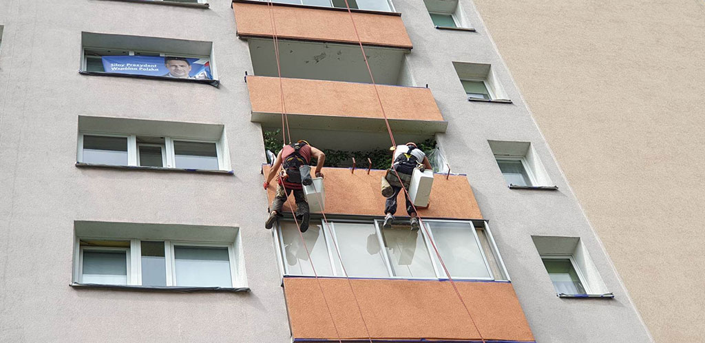 Do zabezpieczenia elewacji przed procesem korozji biologicznej w alpinQ przywiązujemy szczególną wagę, stosując czyszczenie ciśnieniowe środkami grzybobójczymi, gruntujemy oczyszczoną powierzchnię oraz stosujemy farby silikonowe, które świetnie sprawdzają się do malowania elewacji. Z przyjemnością doradzimy oraz odpowiemy na wszelkie pytania dotyczące malowania elewacji, szczególnie na wysokich budynkach.