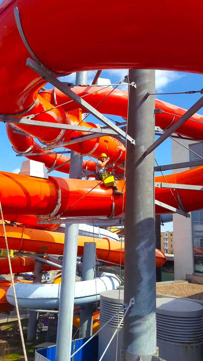 Prace alpinistyczno – renowacyjne zjeżdżalni basenowej